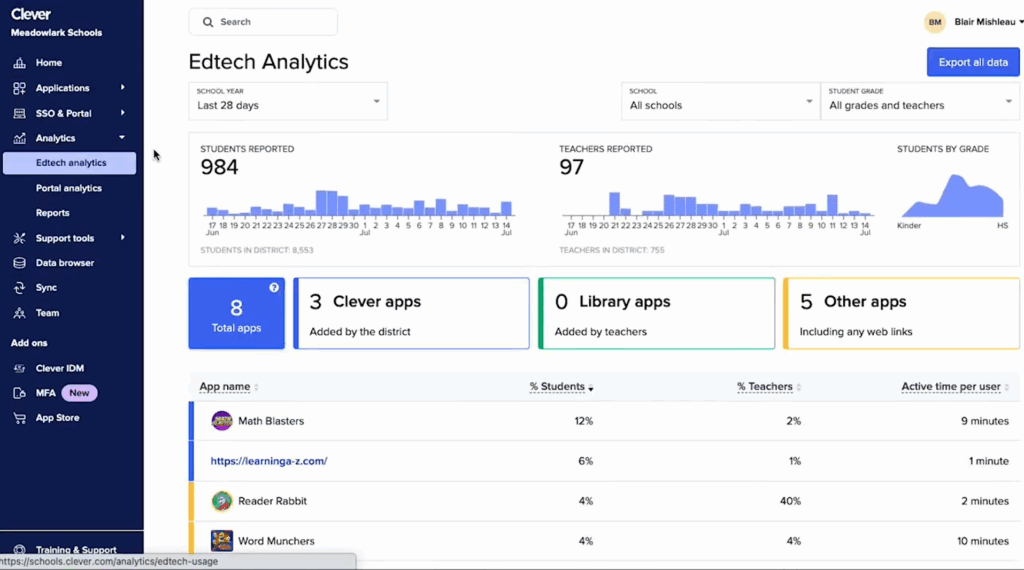 Clever also offers optional add-ons for schools that need more control and security, such as advanced IDM features or deeper reporting capabilities.