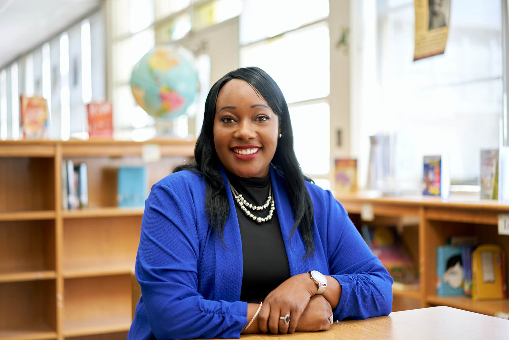 Adults talking in school hallway